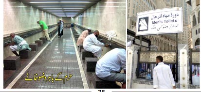 میزاب (پرنالہ): یہ پرنالہ کعبہ شریف کی چھت پر شمالی سمت یعنی حطیم کی جانب کعبہ شریف کی چھت سے بارش کا پانی نکالنے کے لئے لگایا گیا ہے۔